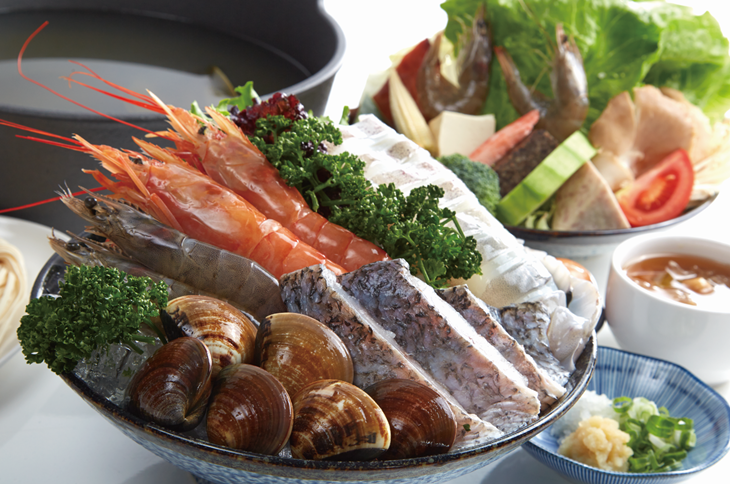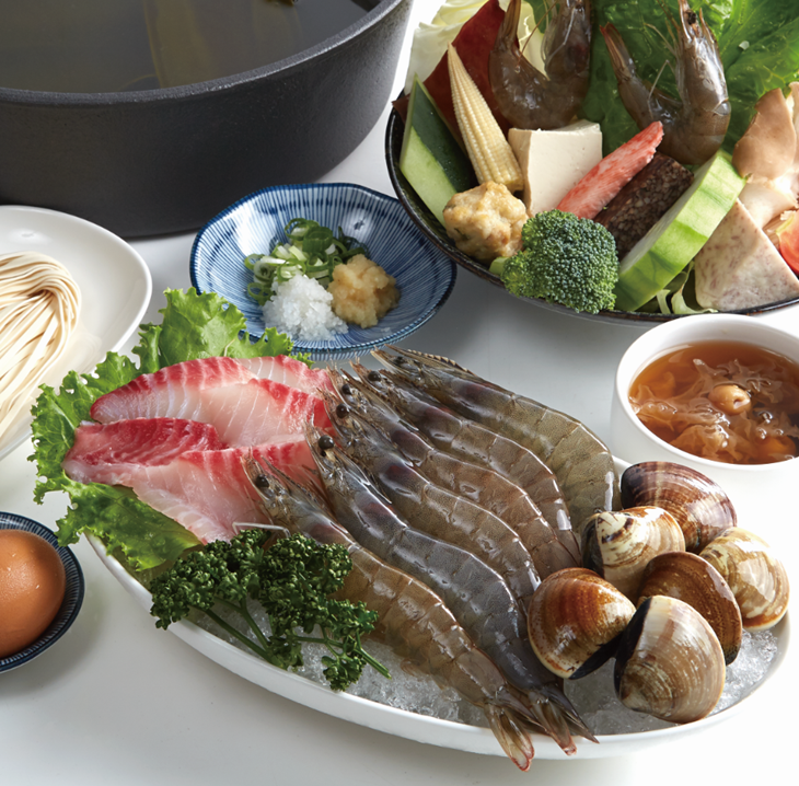 特選各式深海食材,將其處理乾淨後澎湃上桌,霎那間,海底鮮味直逼而來,蝦肉彈牙、魚片細緻、蛤蠣肥美,層次豐富,口感多元,好像才剛與漁夫一同出海補魚回來那般,滿載而歸、收穫滿滿。