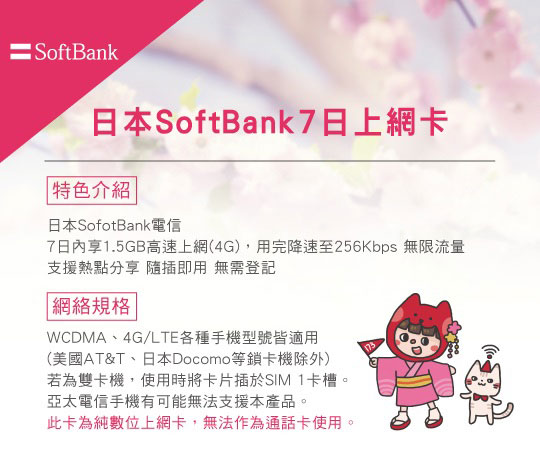 A.日本SoftBank 7日吃到飽網路卡一張 / B.韓國SKT 7日吃到飽網路卡一張 / C.美國T-mobile 15日吃到飽網路電話卡一張 / D.港澳 7日吃到飽網路卡一張 / E.新馬泰 7日吃到飽網路卡一張 / F.歐洲Vodafone 31國28日吃到飽網路電話卡一張