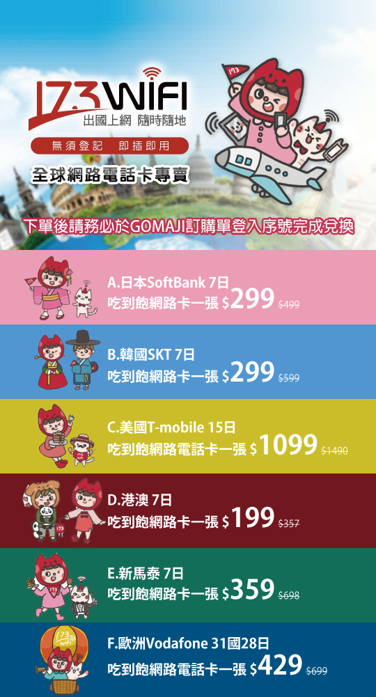 【173WIFI-國際網路電話卡】感謝麻吉們熱烈搶購,已全數賣光光。