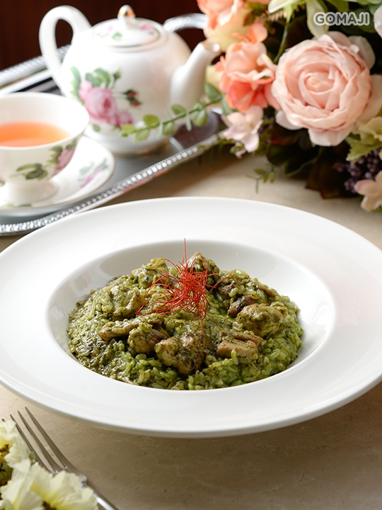 熱 那 亞 青 醬 佐 嫩 雞 奶 油 燉 飯