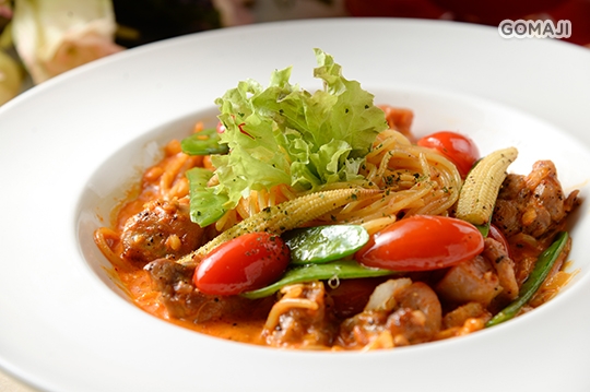 香熱迷人的暹羅泰式紅咖哩雞肉義大利麵,紅通通的色澤好惹人喜愛,繽紛搶眼的波濤,層層堆疊味蕾之上,愈吃愈是欲罷不能。