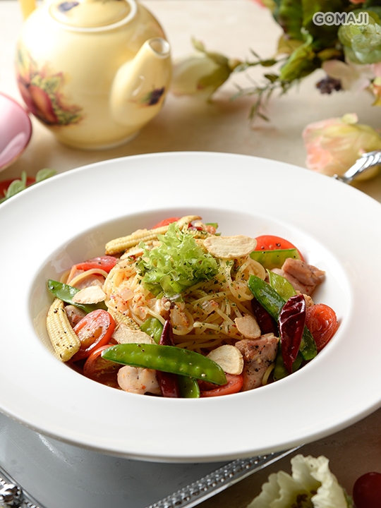 清爽不造作的清炒蒜香辣椒片雞肉義大利麵,麵體 Q 彈細緻,