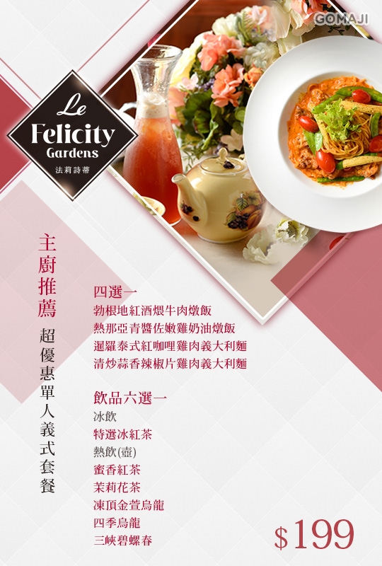 ♔ 主 廚 推 薦 超 優 惠 單 人 義 式 套 餐