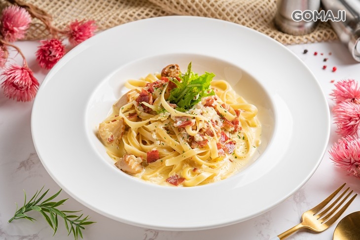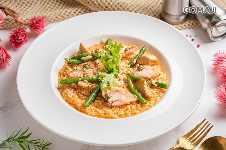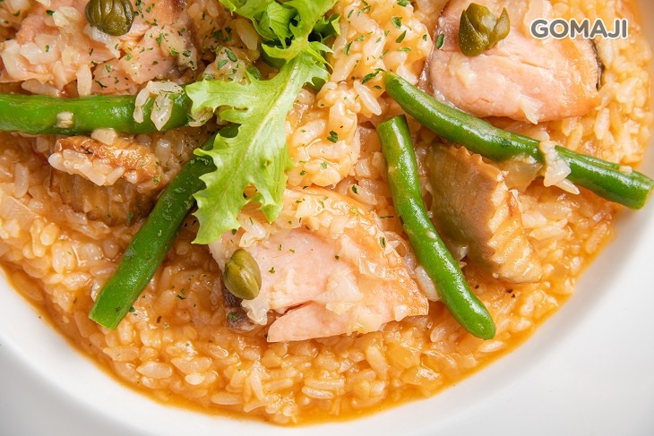 粉紅醬是白醬與紅醬巧妙調合而成的特製醬汁,既有蕃茄的香,也有奶油的甜,是猶豫在兩種口味之間的您最佳選擇!醬汁浸漬在米飯之中,飯香勾勒出鮭魚的煙燻香氣,入口即化的口感更為這道料理大加分!