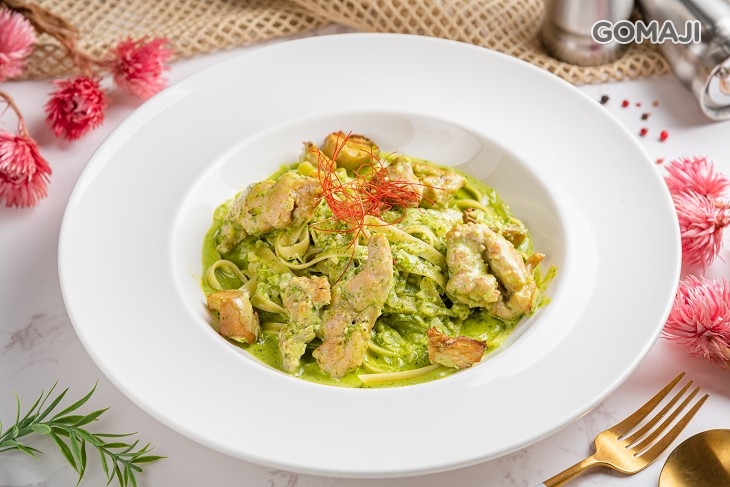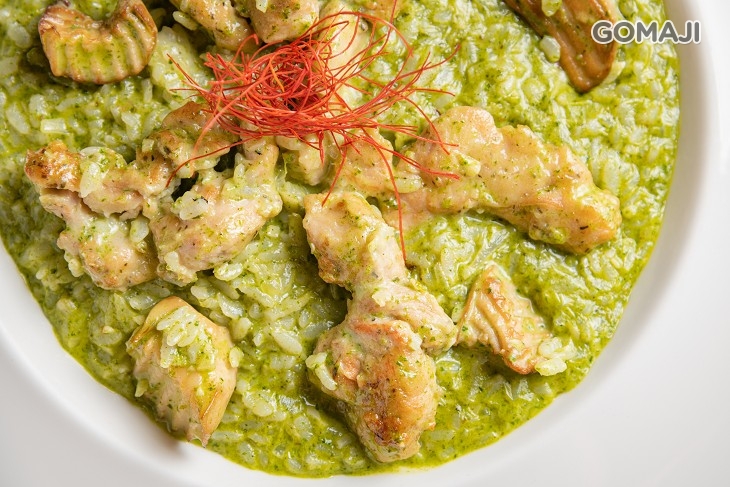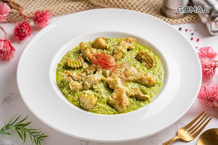 純粹優雅的熱那亞青醬佐燉雞奶油燉飯,粒粒分明的口感,搭配青醬的醇厚香氣,結合馥郁的奶香,每一口咀嚼在嘴裡的盡是無盡芬芳, 再配合雞肉的鮮嫩口感,美味到令人難以忘懷!