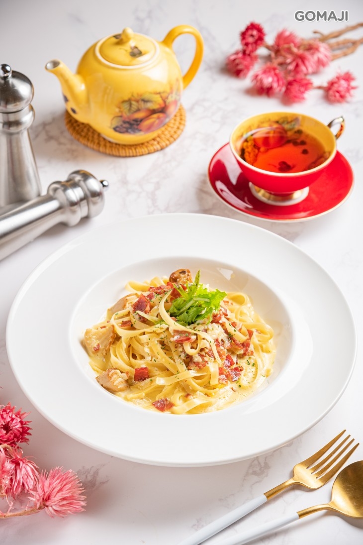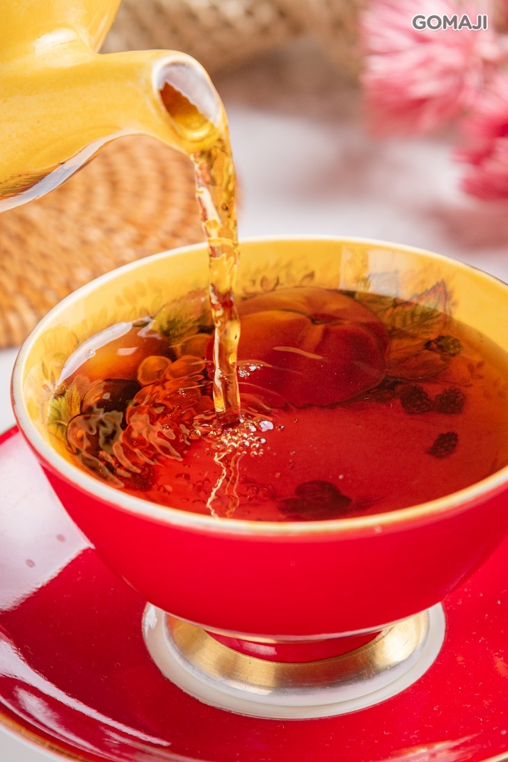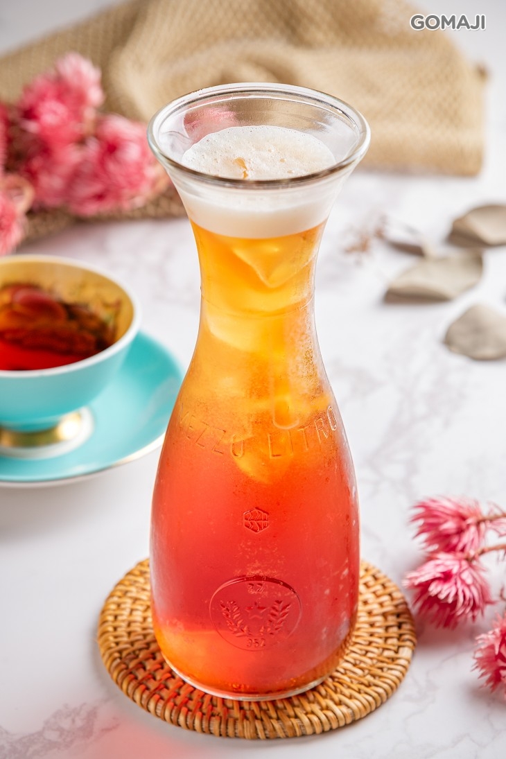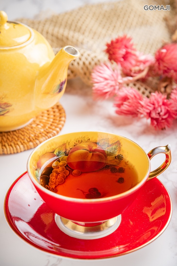 帶有自然香氣的阿薩姆熱紅茶,茶湯紅潤、尾韻柔和,細細品嚐,淡雅茶香在舌尖起舞,搭配歐式茶壺組合,宛如置身在歐洲般,享受一段優雅的午茶時光。
