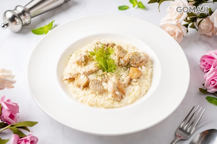 滑嫩甜美的燉飯,讓人感到滿滿的溫暖~溫潤白醬醬汁與燉飯融合在一起,口感綿密美味,雞肉的鮮嫩更是讓美味直達顛峰,絕對值得一嚐。