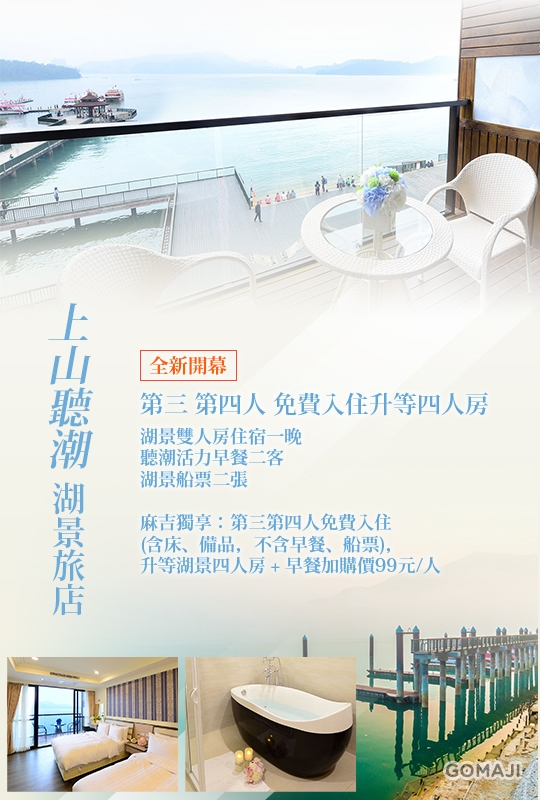 【日月潭-上山聽潮湖景旅店】感謝麻吉們熱烈搶購,已全數賣光光。