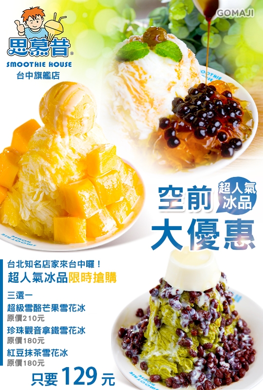 思慕昔除深受台北網紅、觀光客的喜愛,更用力支持台灣小農出產的配料,希望能將台灣出產的好味道帶給大家,本次特選三款人氣雪花冰,絕對能驚艷大家的味蕾!
