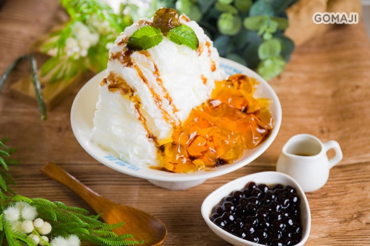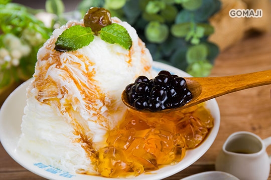 以香濃的牛奶雪花冰為基底,配上特調台灣鐵觀音茶凍與新鮮現煮的熱騰騰黑糖珍珠,最後再放上一顆畫龍點睛的台灣茶梅,多層次的豐富口感,每一口都能品嚐到滿滿幸福!