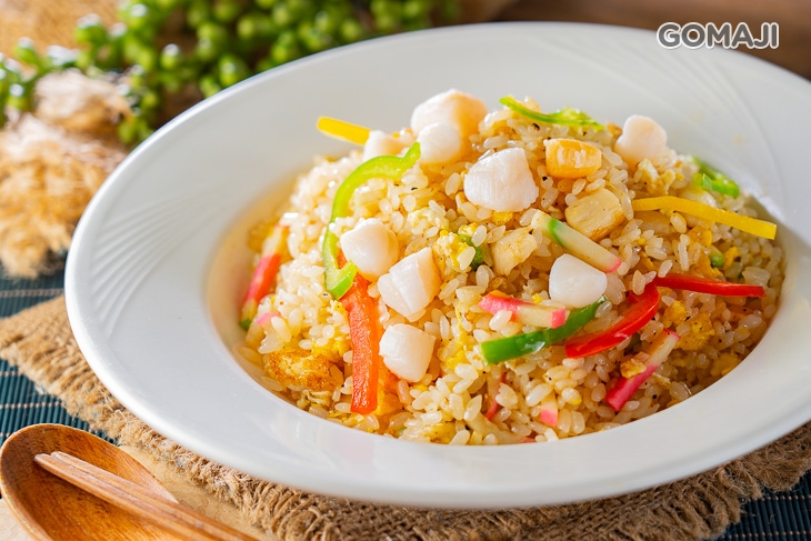 清爽可口的炒飯,有著蛋的甘甜,也有奶油的香氣,搭配上柔滑甘美的新鮮干貝,再撒上些許彩椒點綴其中,不僅視覺上繽紛可口,吃起來也不油膩,任何時候品嚐都很對味呢!