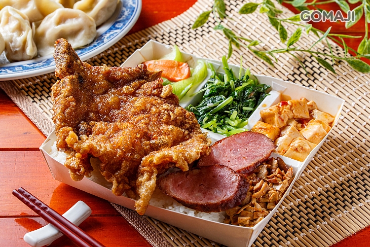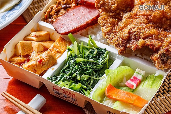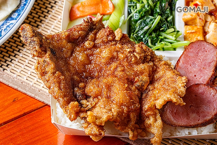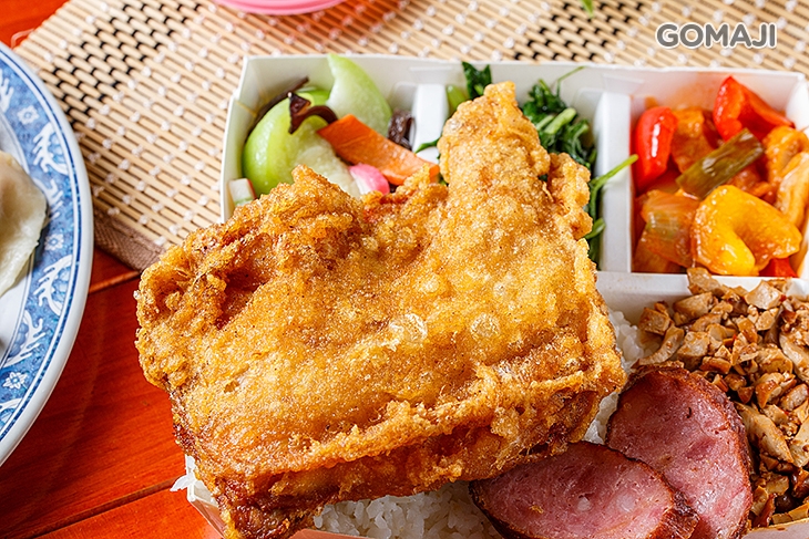 您沒看錯!這塊排骨肉,可是大到連便當都難以蓋過它的風采喔!嚴選排骨,經高溫由炸後,外皮被炸得金黃酥脆,香氣誘人!搭配便當菜完美獻上,入口品嚐,肉嫩味香且一點兒也不油膩!用餐時刻來上一份,幸福滿足!