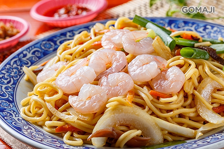 還有烹炒得鮮香入味的蝦仁炒麵,也是本店點餐率超高的餐點。以一顆顆用料實在的蝦仁,佐傳統油麵拌炒而成,入口醬鮮麵香,嚐起來不軟爛且有十足的Q勁。再配上蔥段、紅蘿蔔絲等爆香食材提味品嚐,人人吃過都讚不絕口,直呼美味喔!