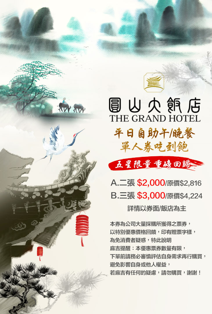 【台北圓山大飯店-松鶴餐廳】感謝麻吉們熱烈搶購,已全數賣光光。