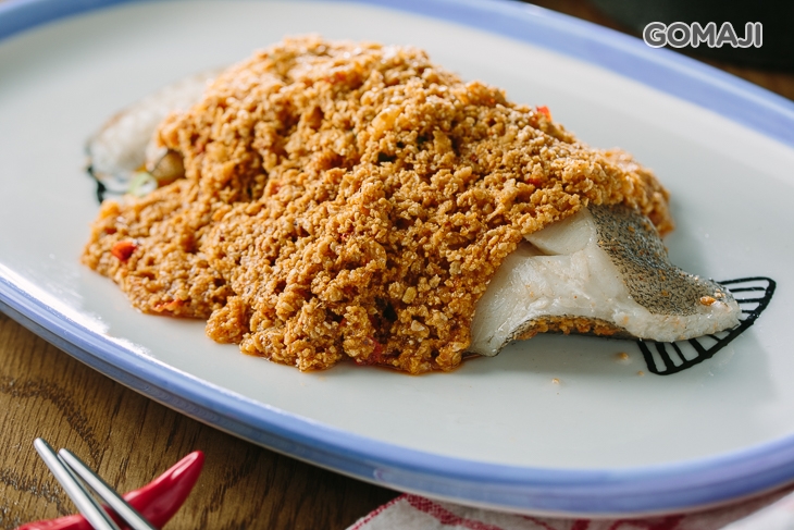 現炒豆酥鹹香酥,搭配鮮嫩扁鱈,絕妙美味。※ 大比目魚俗稱扁鱈。