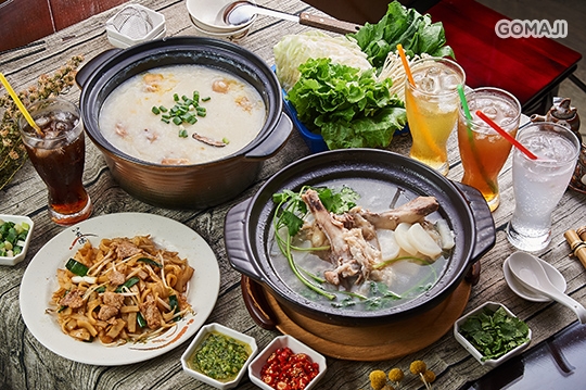 筒骨煲一份 + 蔬菜盤一份 + 砂鍋白菜干鹹骨粥/砂鍋滑雞粥 二選一 + 乾炒豬肉河粉一份 + 飲料:鹹檸七/檸樂/檸檬紅茶/檸檬綠茶 四選四
