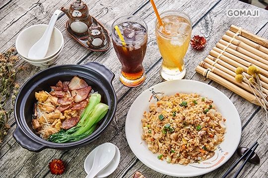 臘味拼排骨煲仔飯/臘味拼雞肉煲仔飯/排骨拼雞肉煲仔飯 三選一 + 廣式鹹魚雞粒蛋炒飯 一份 + 飲料:鹹檸七/檸樂/檸檬紅茶/檸檬綠茶 四選二
