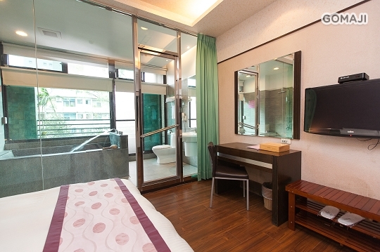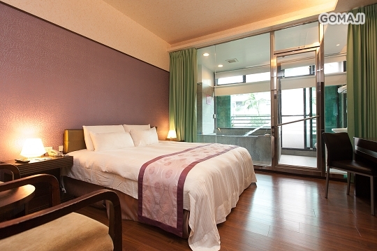 king size 的加大床,客房有玻璃隔間及水泥隔間可選擇,客房內可享用宜蘭礁溪特有的碳酸氫鈉溫泉美人湯,兼具隱密與舒適性,浸浴在頂級湯泉中,擁抱完美假期時光!