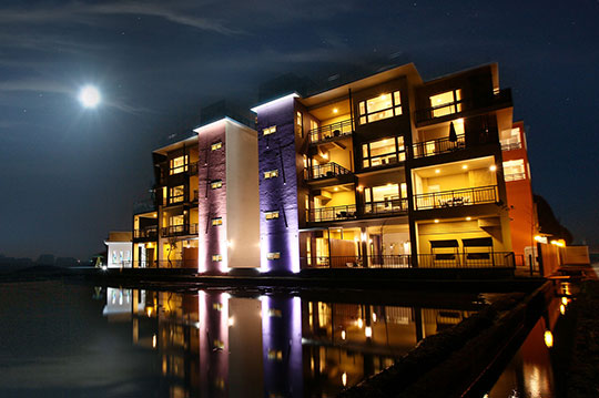 每到夜晚時分,來到頂樓觀星大露台,眺望無際星空,欣賞天空中閃閃發亮的星海景色,明月與整個蘭陽城市美景盡收眼底,無不讓人陶醉,徜徉無限浪漫!