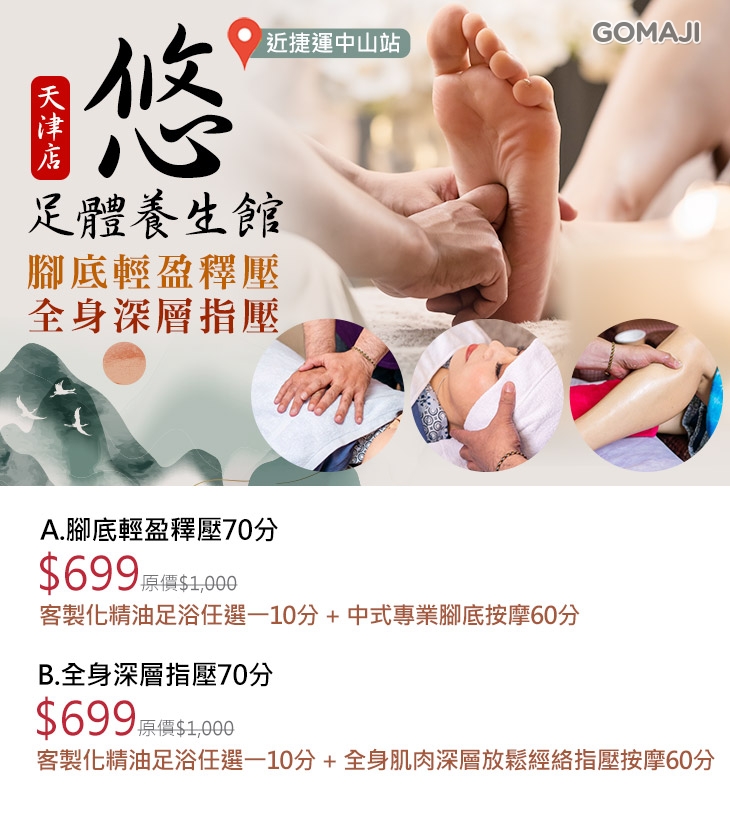 〈客製化精油足浴任選一10分 + 中式專業腳底按摩60分〉