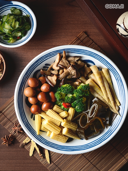 ✔ 玉米筍、海帶、鳥蛋、花椰菜、香菇、劍筍
