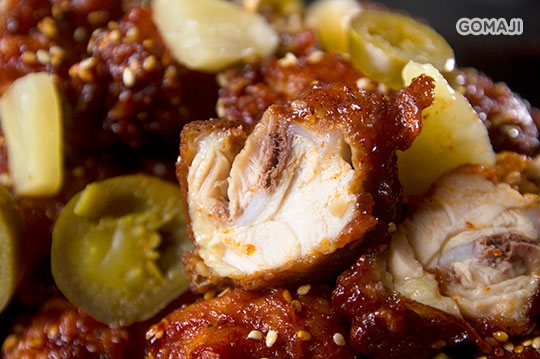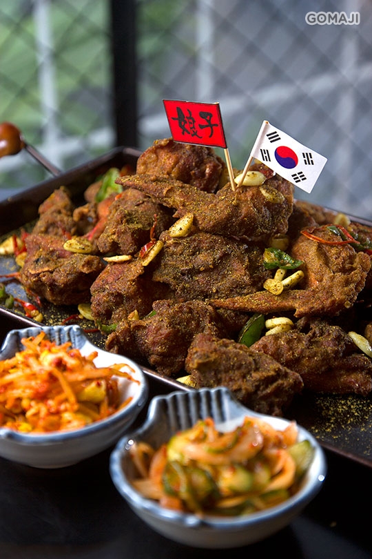 夏天吃辣 94 爽!撒上優雅的白芝麻,風味獨到,將炸雞的味道完整勾勒出來。