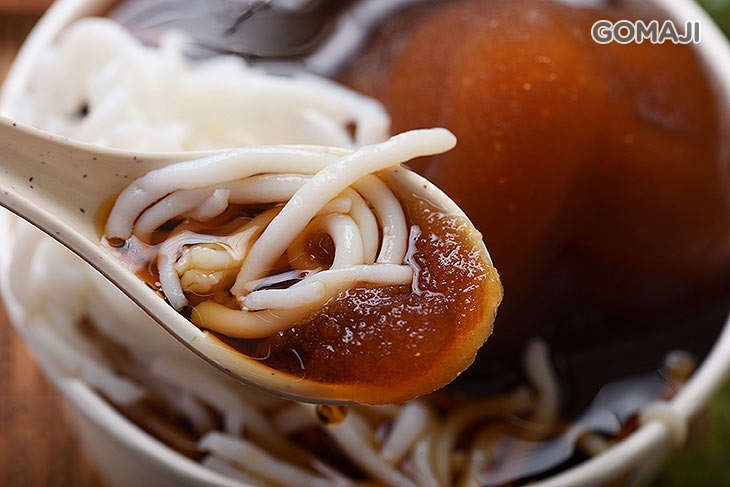 雪白細嫩的米苔目,佐以清甜不膩、綿密涼爽的冬瓜冰一同享用,簡單、樸實的好滋味,在味蕾留下令人深刻的印象,冬瓜自然的甜度,與米苔目滑嫩的口感十分相搭,細細入口,淡雅香甜的美味扣人心弦!