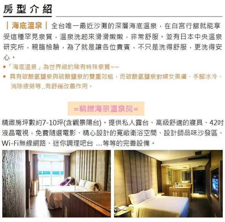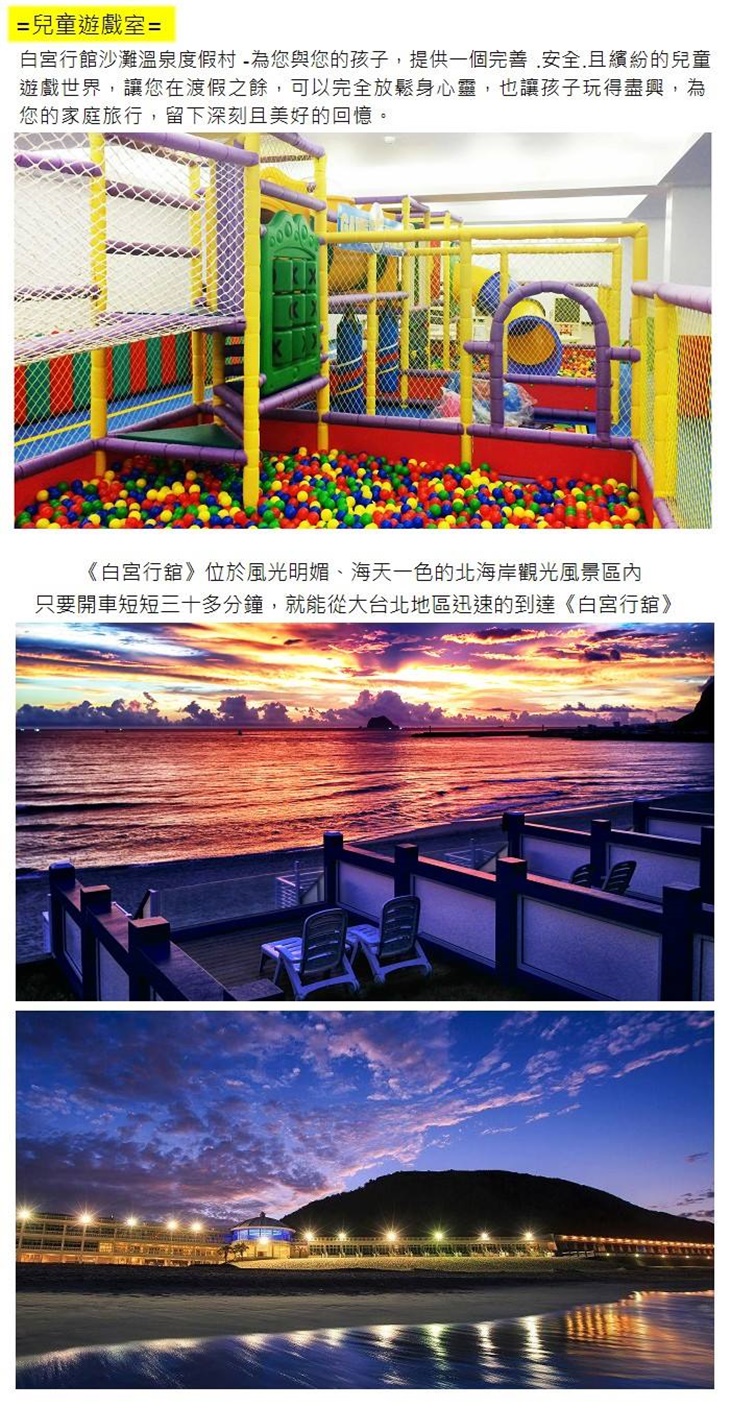 只要3890元起,即可享有【萬里-白宮行館沙灘溫泉度假村】雙人/四人一泊一食住宿券〈含A.精緻海景溫泉房/B.精緻海景溫泉家庭房 住宿一晚 + 早餐〉