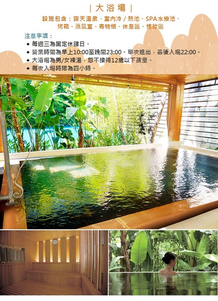 C.馥蘭朵烏來渡假酒店單人大眾裸湯+套餐券二張