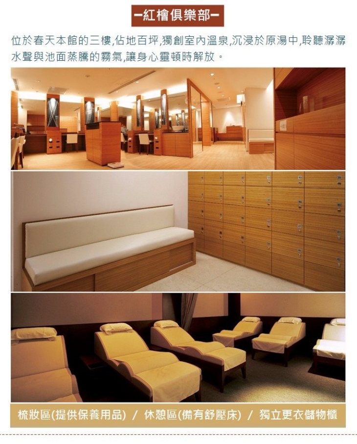 B.春天酒店單人紅檜俱樂部泡湯券+午間定食套餐一客
