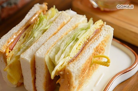 層層堆疊出來的美味三明治!軟嫩的蛋、火腿、生菜等配料,加上香氣誘人的花生醬,具有飽滿份量的口感,滋味絕佳,感受豐富的滿足感,補足一天滿滿的元氣!