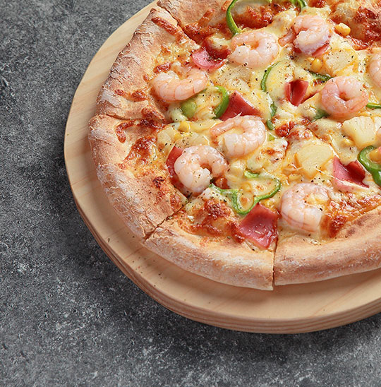 新鮮海鮮搭配頂級香濃起司經過窯烤後,深深烙印在餅皮上,讓您品嚐料多濃香的牽絲感動!