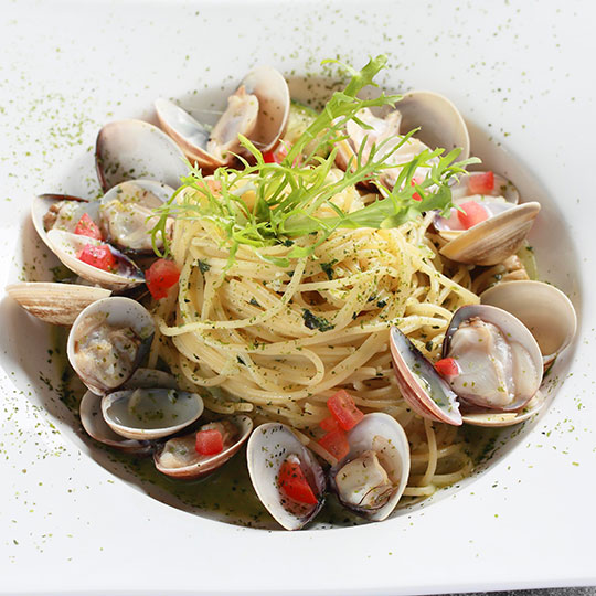 肥美飽滿的蛤蠣讓人看了就胃口大開,帶著白酒的淡雅氣息,陣陣誘惑您的味蕾!海鮮精華伴隨著麵條的Q彈,滑嫩的質地噴發出最新鮮的大海芬芳,上等的海鮮口感更加突顯出料理的細膩程度,百分百的美味讓人無法自拔!
