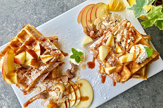 讓香甜濃郁的焦糖蘋果鬆餅伴您渡過悠閒的午後,可說是生活中的一大享受!搭配上優雅的音樂及迷人的咖啡香,更是令人沉醉在慵懶的時光裡。美麗的色澤,外酥內軟的絕佳口感,不僅甜而不膩,更讓您吃了甜在心頭!
