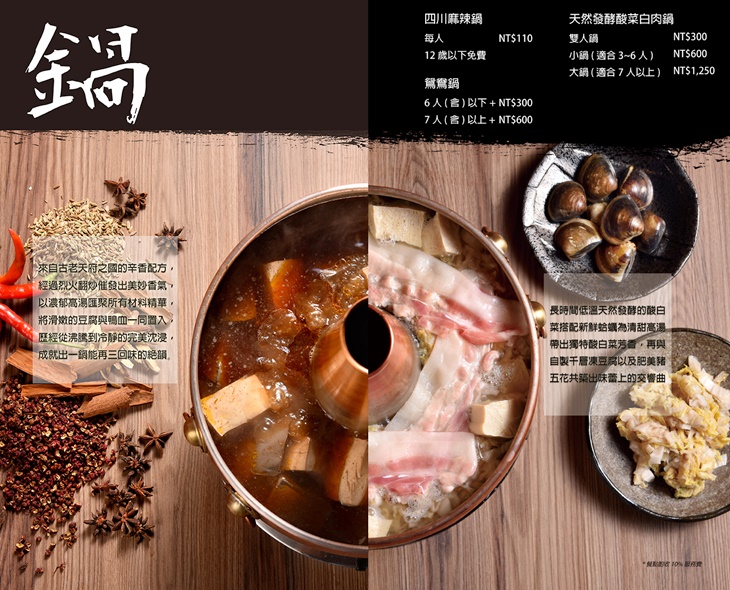 店家手工自製 55 日低溫天然發酵熟成的酸白菜為基底,配上每日熬煮高湯、白肉、以及蛤蜊製成鍋底、鍋底裡的天然乳酸菌酸而不咬舌、高湯鮮甜、入口溫和酸後回甘。