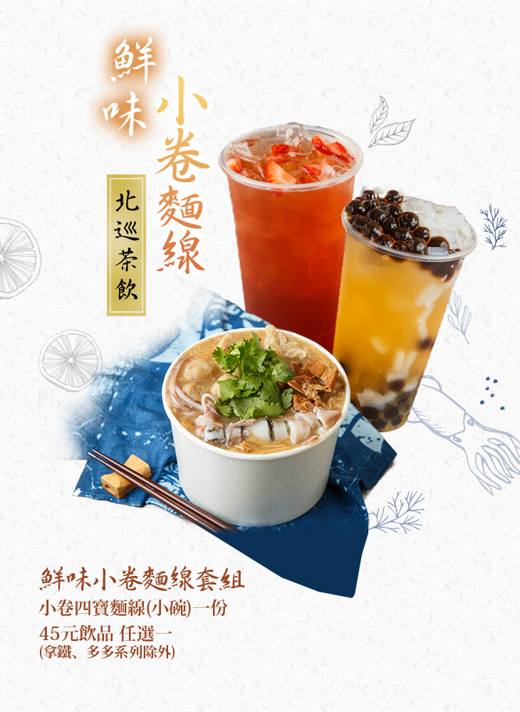 〈小卷四寶麵線(小碗)一份 + 45元飲品任選一(拿鐵、多多系列除外)〉