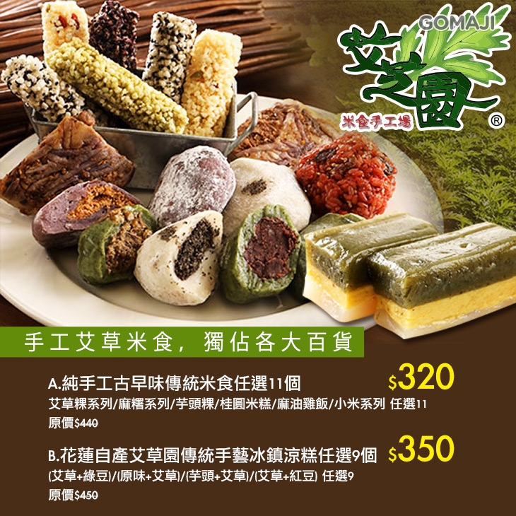 艾草粿系列/麻糬系列/芋頭粿/桂圓米糕/麻油雞飯/小米系列 任選11