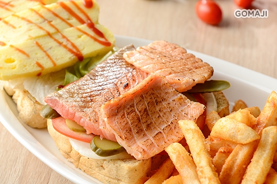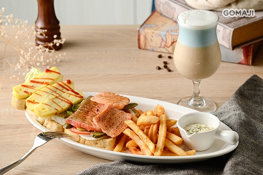 厚切培根三明治/柑橘雞腿肉三明治/挪威炙燒燻鮭魚三明治/松子雞腿肉漢堡/夏日水果漢堡/黑胡椒牛肉漢堡/繽紛鮮水果鬆餅/香蕉巧克力鬆餅/抹茶配紅豆鬆餅 九選一 + 160元以下飲品任選一杯(特別推薦:法式玫瑰拿鐵、顛倒世界、晨曦蘋果醋飲、愛好自由的天空牛),艾爾沙的冰雪皇宮系列除外