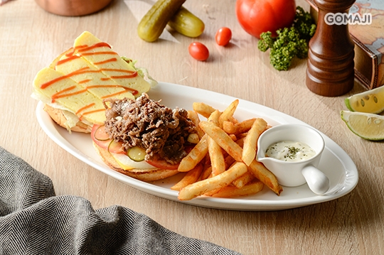 經典歐式童話篇章系列/懷舊台灣味-初心系列/主廚特製沙司白脫飯系列 任選二 + 開放三明治系列/漢堡系列/鬆餅系列 任選二 + 當日手工甜品四份