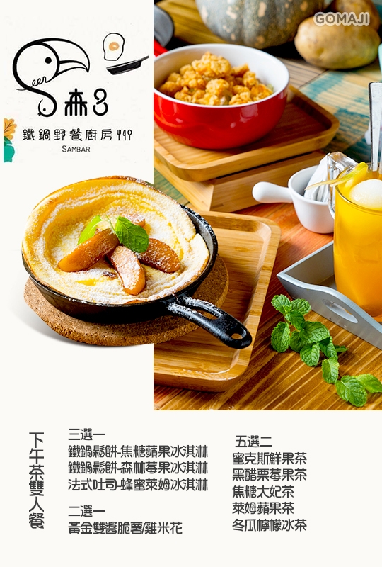 鐵鍋鬆餅-焦糖蘋果冰淇淋/鐵鍋鬆餅-森林莓果冰淇淋/法式吐司-蜂蜜萊姆冰淇淋 三選一 + 黃金雙醬脆薯/雞米花 二選一 + 蜜克斯鮮果茶/黑醋栗莓果茶/焦糖太妃茶/萊姆蘋果茶/冬瓜檸檬冰茶 五選二