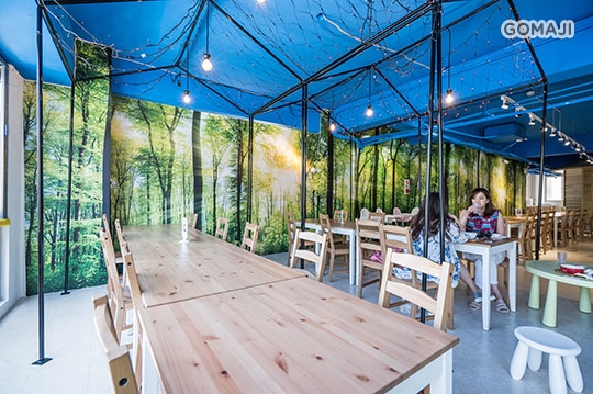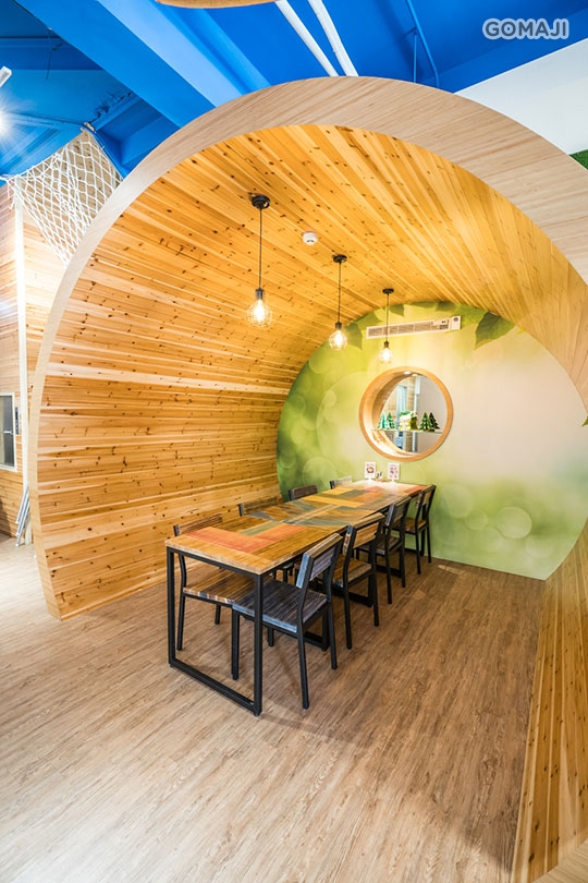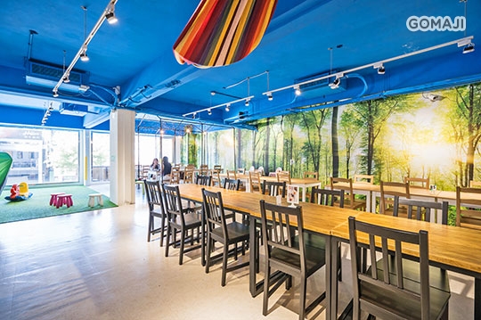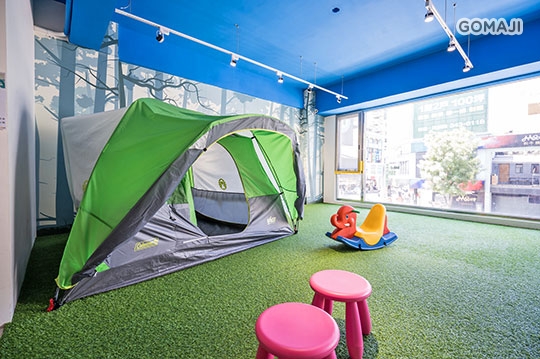 以清新綠色為基調,再以帳篷、草地做為裝飾,享受悠閒緩慢的步調彷彿吹著自然徐風,一掃生活的煩憂 !