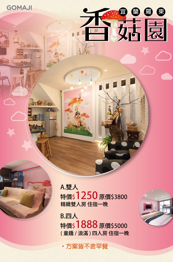 近羅東夜市,生活機能便利!在這個有著清新空氣的舒適環境中,用心打造鄉村可愛風主題民宿,在湛藍天空與熱情陽光的映照下,更突顯出民宿的溫暖氛圍!從植栽、擺設到桌椅,都讓您踏進如童話森林般的夢幻空間!柔和採光與精心裝潢,處處充滿家的溫馨感,帶著愉悅的心情來到這裡,拋開所有都會束縛,放下疲憊與煩惱,盡享悠閒好時光!