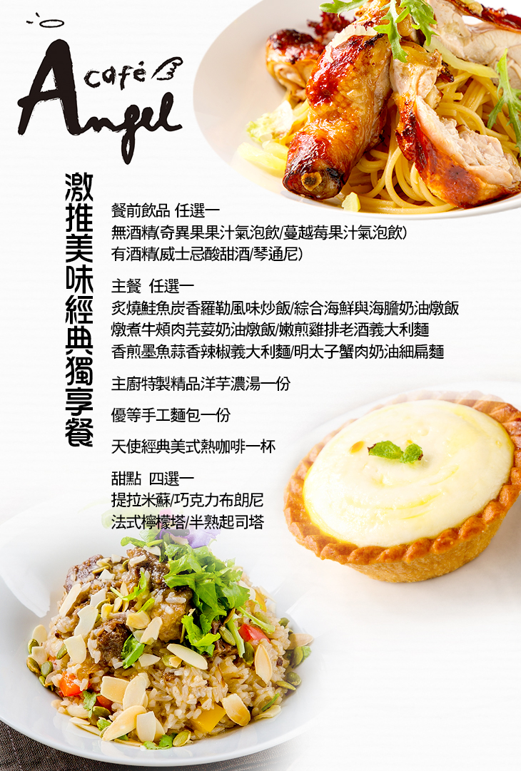 〝Angel Cafe' 〞突破層層重圍,在國際美食一級戰場永康商圈塑造別有洞天的雅致咖啡,美輪美奐的設計,大面窗採光,為空間注入綠意,也是將「自然」搬進空間的一份美意。入內細細品味,彷彿天使曾蒞臨般的降下幸福喜悅。由 IN HOUSE 團隊一手重金策劃的新品牌 CAFE,堅持選用最好的食材,例如上選溫體肉,吃出肉的鮮美滋味,補充滿滿肉蛋