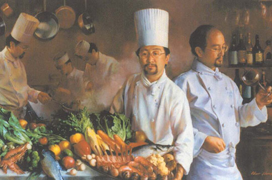▼ 知名畫家陳香吟眼裡的大廚形象,精湛演繹出完美的餐桌料理。