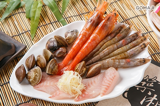 海鮮:天使紅蝦 + 白蝦 + 蛤蠣 + 鯛魚