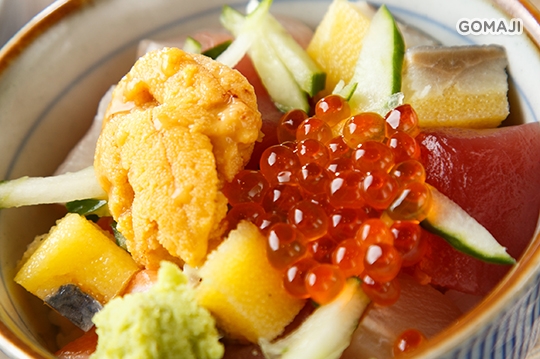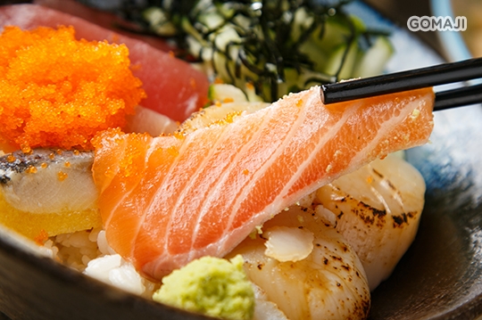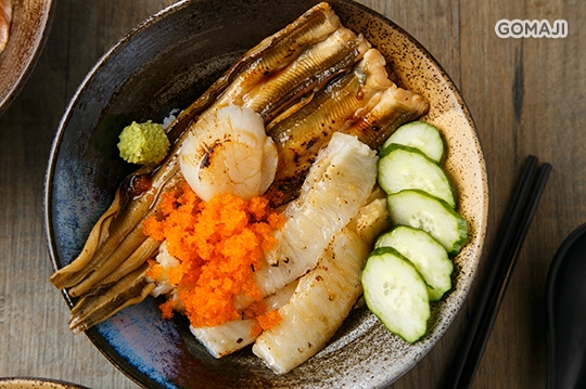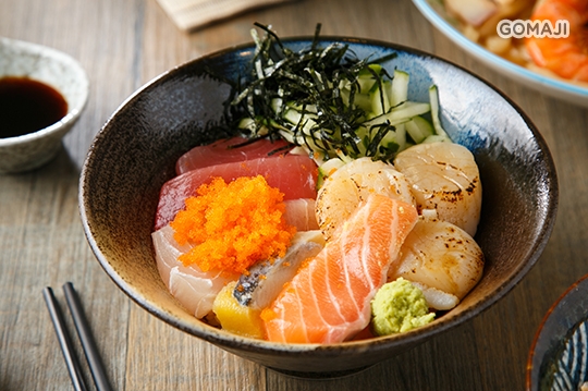 豐腴爽嫩的新鮮生魚片佐炙燒干貝,涼暖交疊的舌尖滋味,給予味蕾雙重快感,如雙星爭輝,難較軒輊的極品鮮丼。美味秘訣正是來自基隆海港,堅持直送海產,將大海最鮮美味送入你口中,直呼痛快!