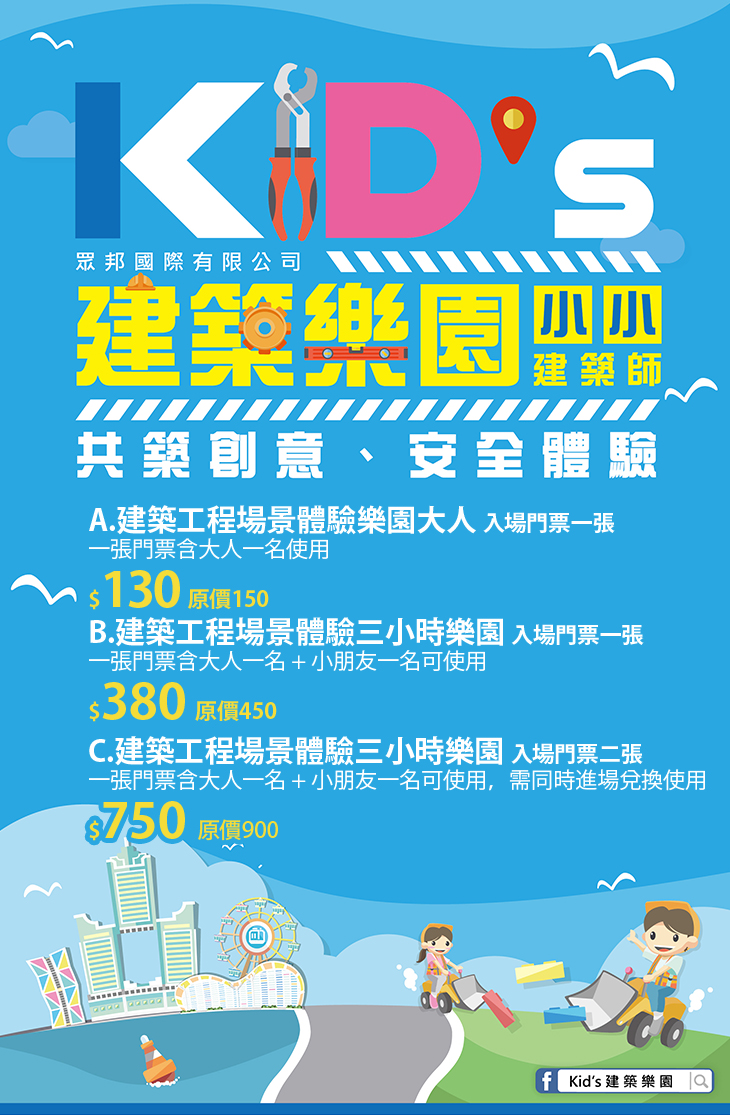 A.建築工程場景體驗樂園大人入場門票一張 / B.建築工程場景體驗三小時樂園-入場門票一張 / C.建築工程場景體驗三小時樂園-入場門票二張