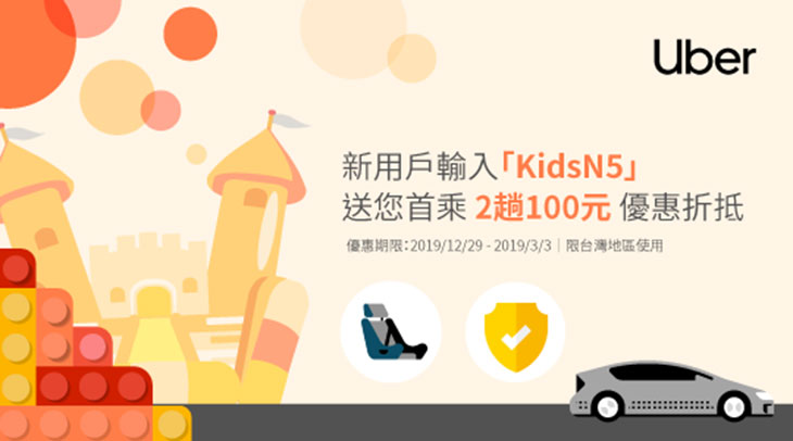 入序號「KidsN5」,即享新用戶 100 元乘車優惠 (共2趟)。