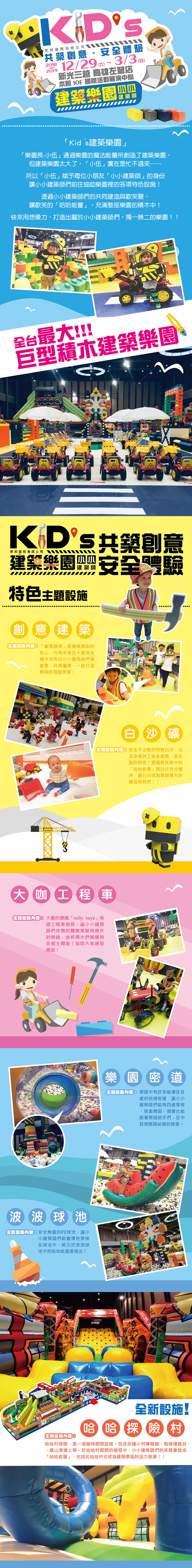 2019寒假、年節期間的親子同樂首選!建築樂園「小小建築師-共築童樂館」由韓國FOART專業團隊設計打造的「安全、友善」園區!讓孩子們於合作過程中,共築創意、安全體驗親子同樂、樂學習的暑期時光!