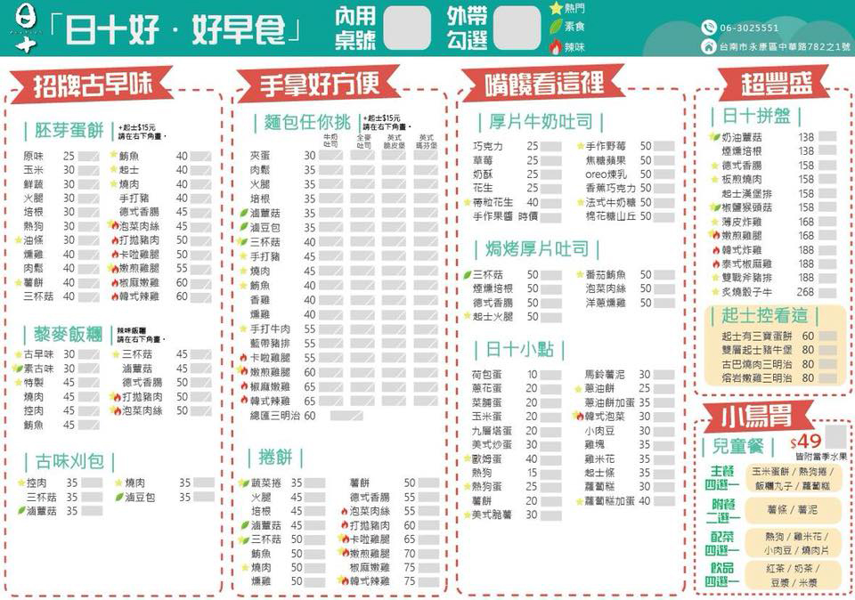 營業時間:週一至週日 06:00~13:30 每週二公休
